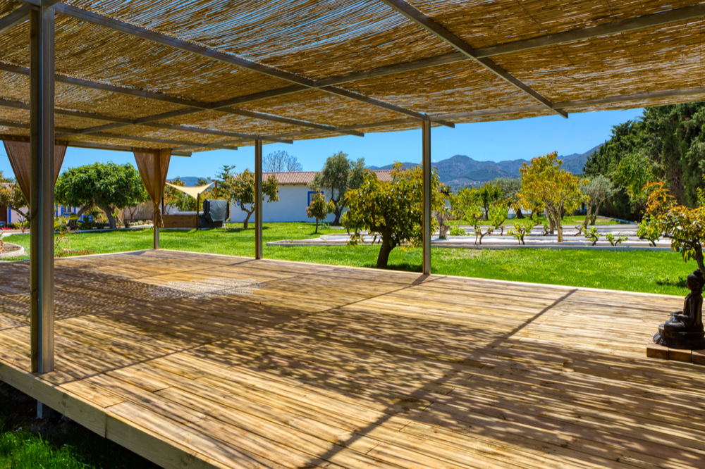 and rustic yoga Shala in the gardens